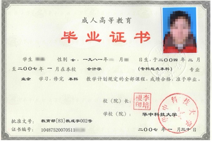 成人教育毕业证书样本