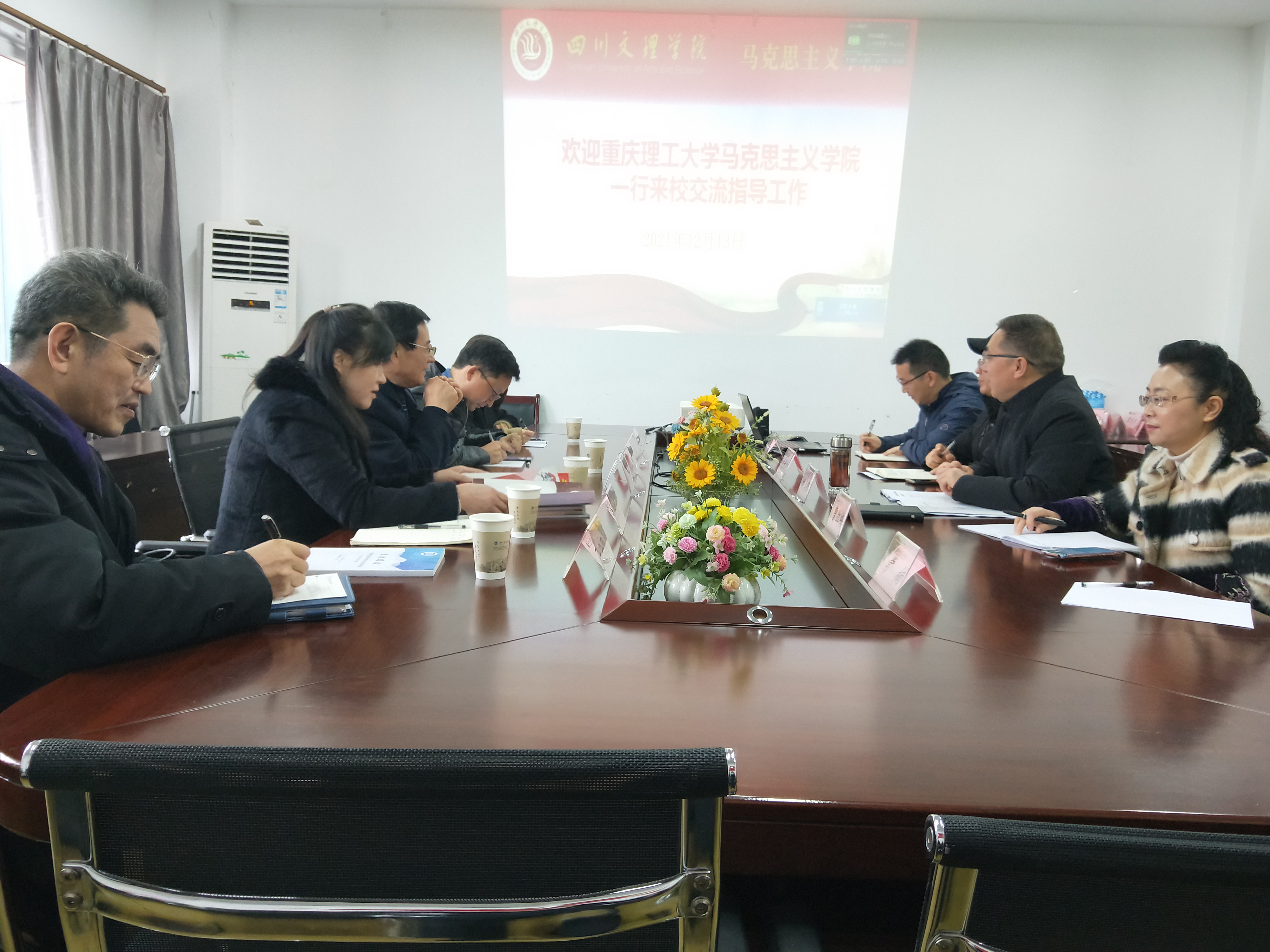 2021年12月13日上午,重庆理工大学永利集团yl6809官网院长徐茂华、党委书记黄旭、副院长谭莉莉、办公室副主任张洁琳以及王兴国老师一行5人来我校永利集团yl6809官网开展交流指导,永利集团yl6809官网党总支书记刘春辉、政法学院院长刘长江、党政办主任常楠、马克思主义基本原理教研室主任曹红梅、形势与政策教研室主任梁云参加了座谈会。