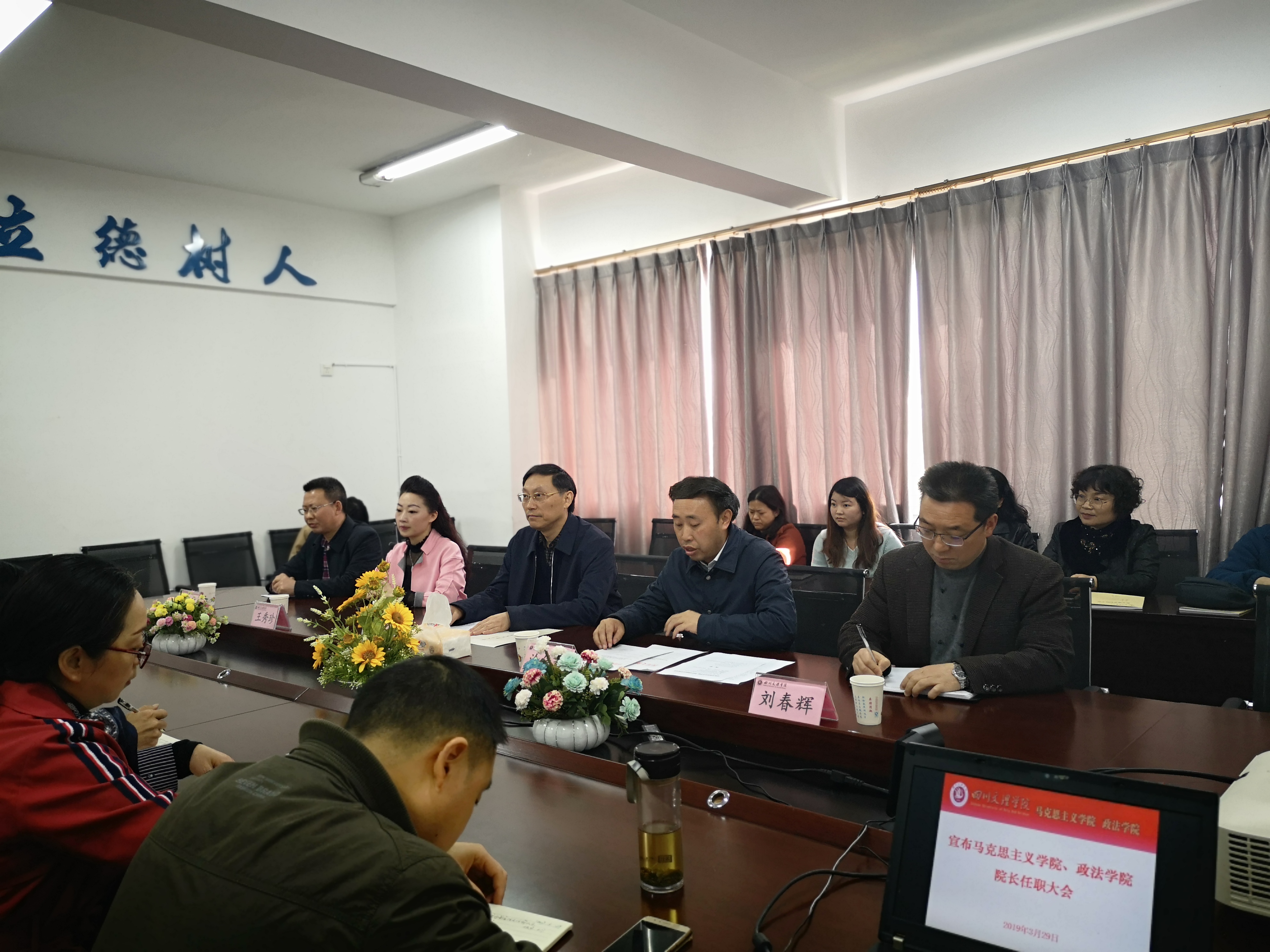 新任院长刘长江表态发言,他向全体教职工介绍了自己的工作经历以及对马政学院的见解及对学院工作的谋划,倡导勤学习、讲团结、求实效、求创新等工作理念。将严格要求自己,对工作尽职尽责,抱着一颗感恩与进取的心对待组织和工作,决心更快更好地胜任院长这一角色。