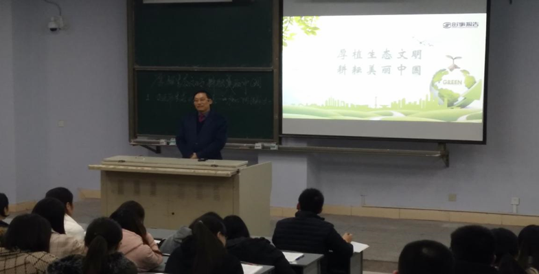 耕耘美丽中国付出的努力以及取得的成效。王书记授课持续两个小时,授课内容丰富,教学手段多样,课堂气氛活跃,师生互动良好,学生受益颇多。通过本次专题授课,不仅使同学们深入理解了习近平生态文明思想的丰富内涵,也了解我国关于生态文明建设相关政策与法律,既有助于学生增强环境保护意识,更增添了致力于实现美丽中国的决心与信心。
