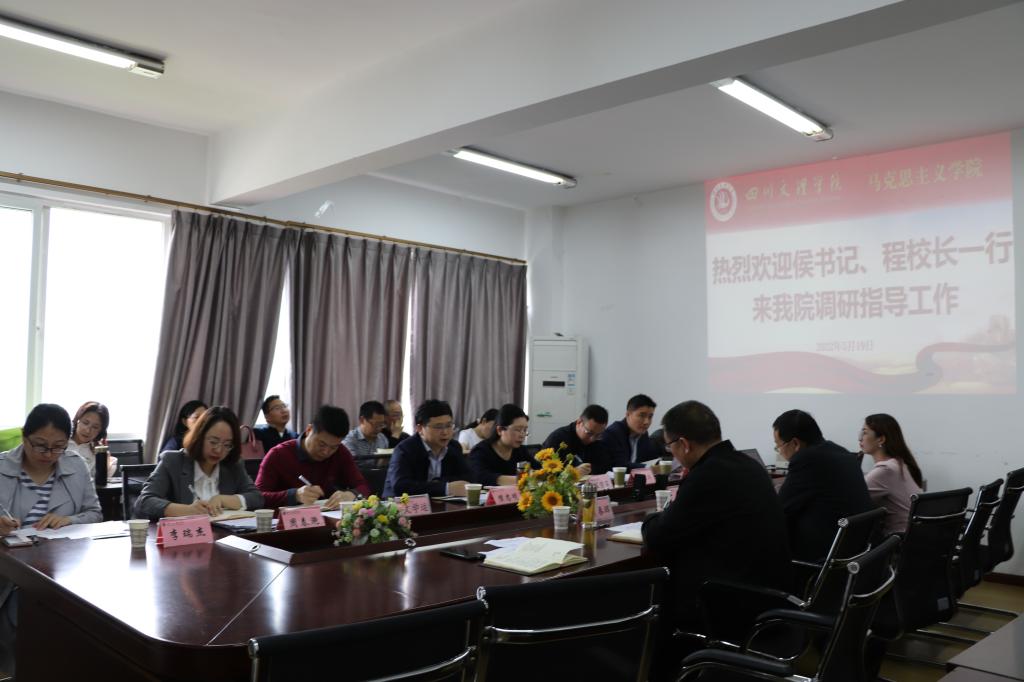 调研组一行在博文楼611会议室召开座谈会,会议由学校党委副书记侯忠明主持。首先,永利集团yl6809官网院长孙杰教授从永利集团yl6809官网基本情况、发展目标、发展思路、队伍建设、教学管理、思政课建设、科学研究、服务地方等方面以及学院建设中存在的问题进行了汇报。随后,党委宣传部副部长姜仕华同志组织所有与会人员一起学习和认真讨论了《四川文理学院关于高等学校思想政治理论课建设标准》。党总支书记刘春辉同志汇报了永利集团官网拟定的《四川文理学院专职思政课教师岗位津贴发放管理办法》以及《四川文理学院专职思政课教师专项岗位津贴发放细则》政策依据、调研情况、主要内容等。