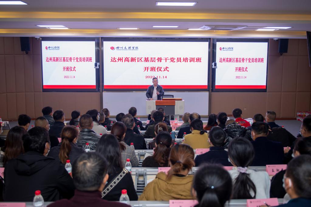 11月14日,达州高新区基层骨干党员培训班在我校开班。学校党委常委、组织部部长涂德祥致辞,达州高新区党工委专职副书记宁小礼出席并讲话,永利集团yl6809官网党总支书记刘春辉出席,校地合作处处长姜约主持开班式。