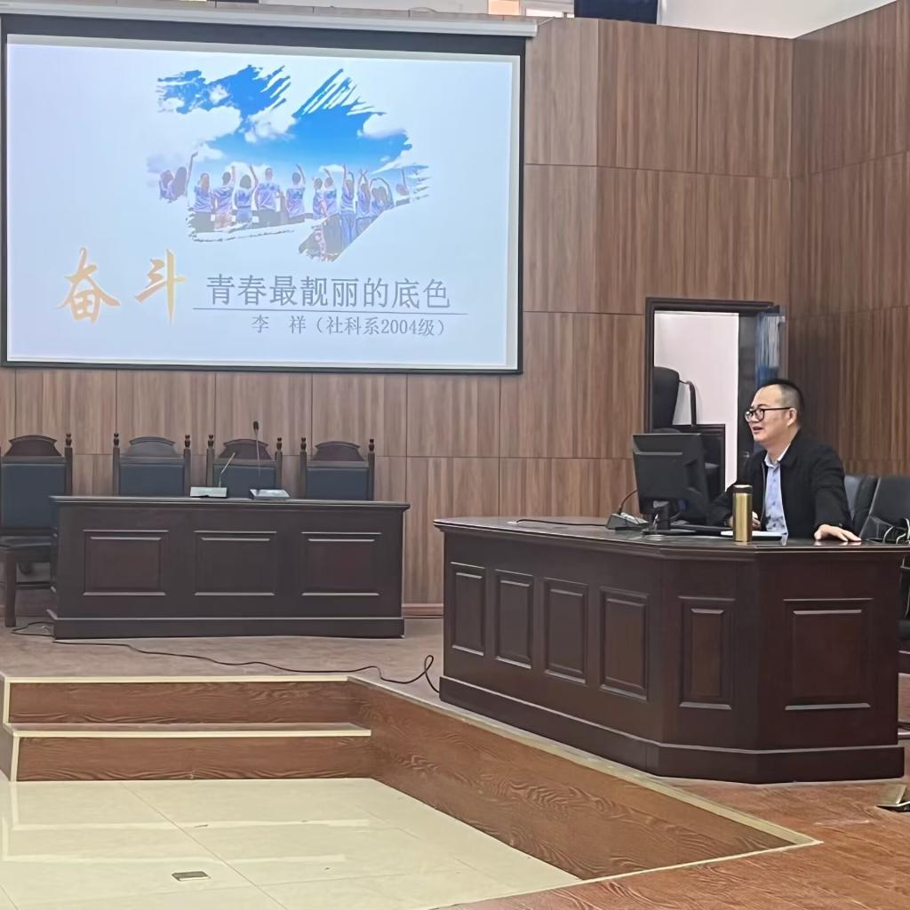 为进一步深入学习贯彻习近平总书记关于思政课建设的重要论述,牢牢把握思政课是立德树人关键课程的定位,善用“大思政课”,强化教师在办好思政课中的关键地位,不断推动思政课改革创新,11月18日,永利集团yl6809官网举办《优秀校友思政大讲堂》系列讲座之二。讲座邀请我校原社科系2004级思政专业优秀毕业生、达州职业技术学院现代农业学院院长,达州乡村振兴学院院长李祥副教授为我校政法学院2022级思想政治教育专业学生讲了一堂既生动又具有启发意义的思政课。 永利集团yl6809官网党政领导、部分思政教师及政法学院思想政治教育专业大一学生100余人参加。