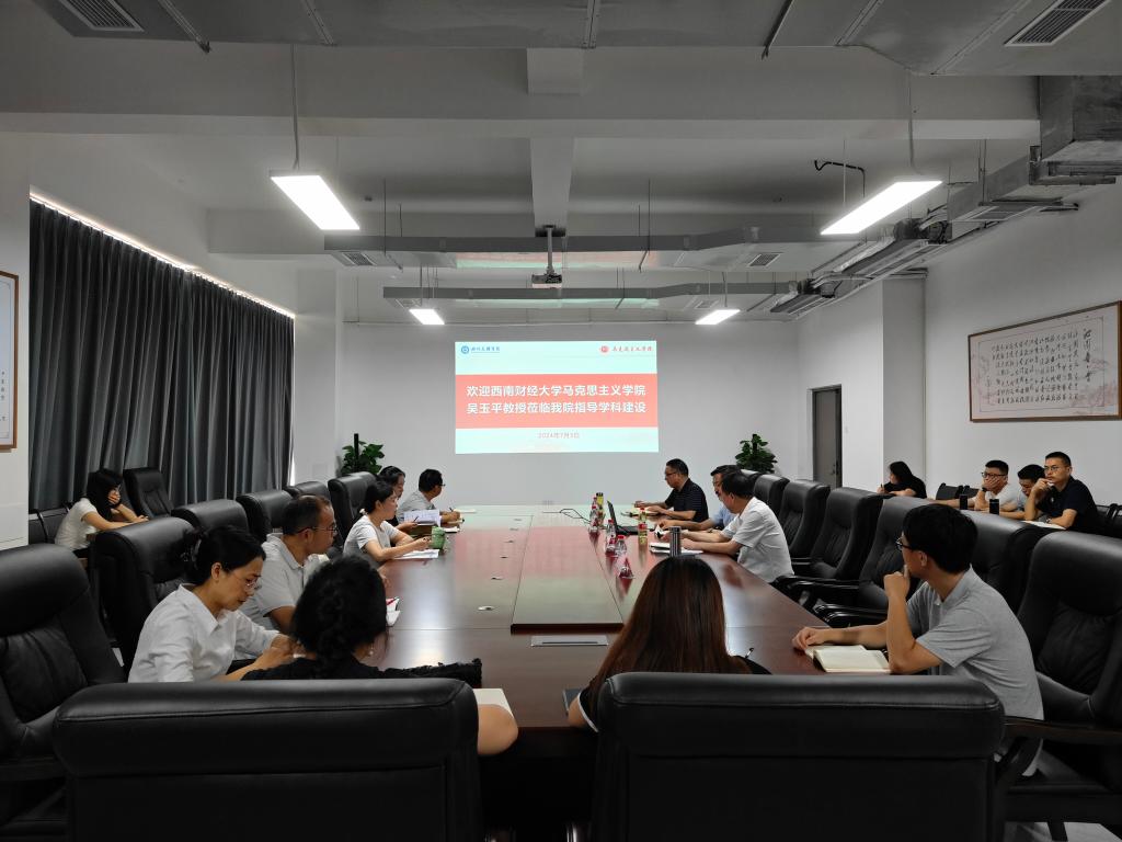 为深入推进马克思主义理论学科建设,提升思政课教学质量,应学院邀请,7月5日下午,西南财经大学永利集团yl6809官网吴玉平教授莅临永利集团官网指导学科建设并参加座谈会。座谈会由学院院长孙杰教授主持,永利集团yl6809官网全体教师参加会议。