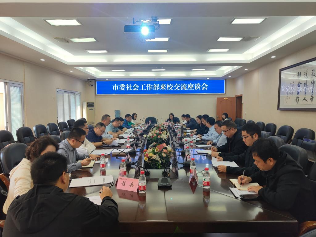 为全面深化市校合作,进一步推进达州基层治理学院高质量建设,10月9日,市委社会工作部部长余世斌一行来我校座谈交流。校长侯忠明出席并主持座谈会。
