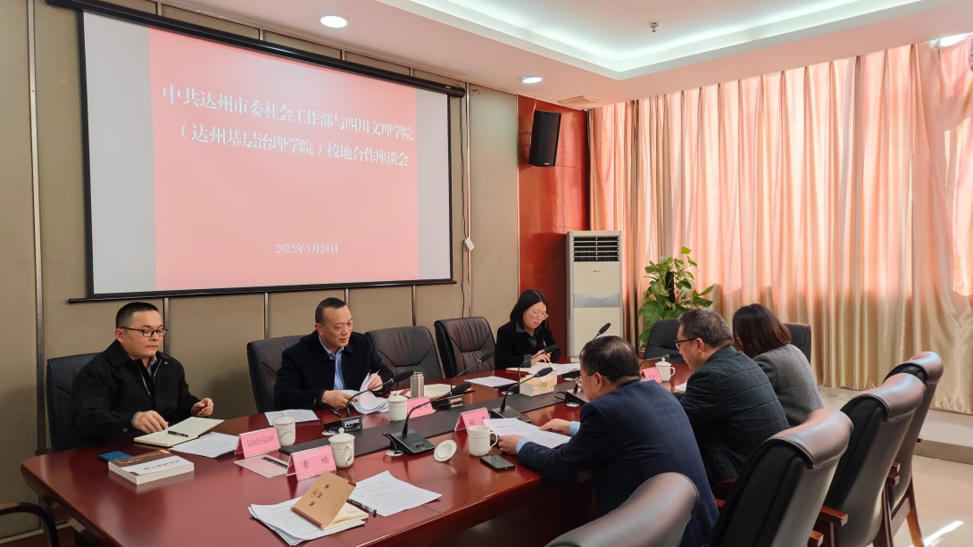 2025年3月24日,永利集团yl6809官网党委书记刘春辉,永利集团yl6809官网院长、达州基层治理学院副院长孙杰,永利集团yl6809官网党委副书记、纪委书记周春滟赴中共达州市委社会工作部开展校地合作交流,并开展毕业生拓岗工作。达州市委社会工作部部长、“两新”工委书记余世斌同志主持召开校地合作座谈会。