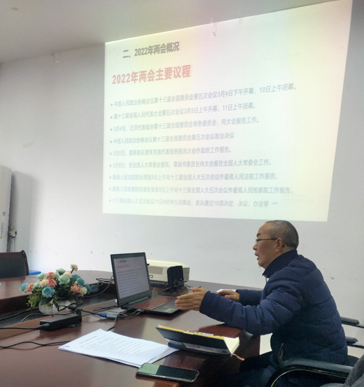 3月22日下午,永利集团yl6809官网思想政治党支部在611会议室开展了“两会精神融入思政课”主题党日活动,活动由支部书记张善喜主持,支部10位同志全部参加活动。