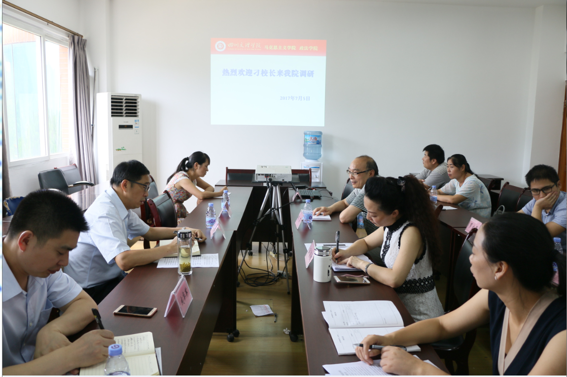 刁校长在学校党办副主任成华军和永利集团官网党政领导陪同下,认真查看了学院宣传展板,走访了学院办公场所、图书资料室、教研室,详细了解了学院的办公条件。随后,在学院611会议室召开座谈会,听取工作汇报。