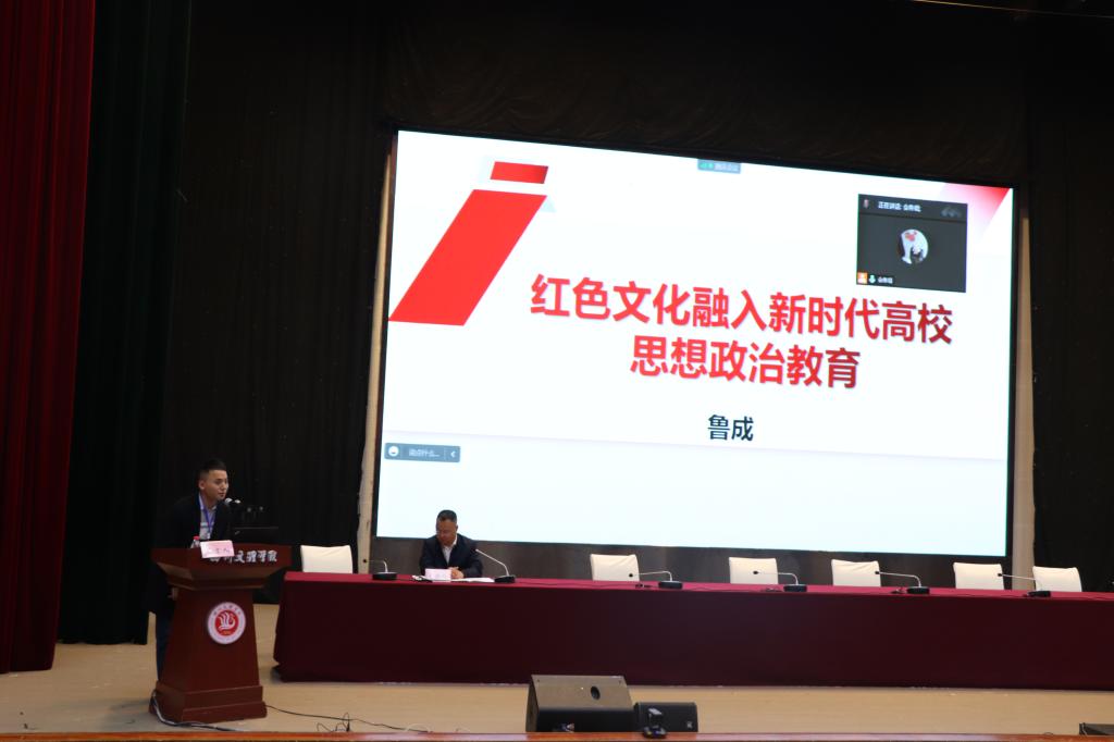 鲁成做了题为《红色文化融入新时代高校思想政治教育》的主题发言,他从红色文化融入新时代思想政治教育的理论阐述、价值意蕴、面临的挑战和实施路径四个方面进行分析,提出新时代要发挥好红色文化铸魂育人的功能,使红色文化不断实现创新转化。