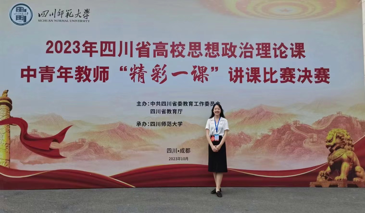 1028-29日,2023年四川省高校思想政治理论课中青年教师“精彩一课”讲课比赛决赛在四川师范大学举行,此次大赛旨在充分展示全省各高校深化思政课改革创新的成果,推动新时代高校思想政治理论课高质量发展。永利集团官网高度重视,精心组织,青年教师丁玉洁参赛并荣获“特等奖”。