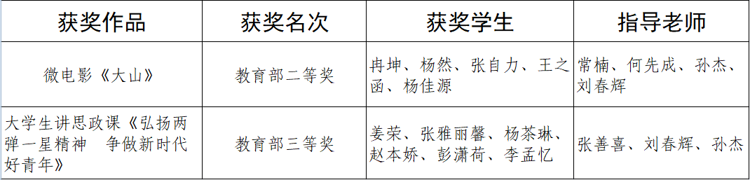 永利集团官网原创微电影《大山》、大学生讲思政课《弘扬两弹一星精神 争做新时代好青年》分别获教育部二等奖和三等奖