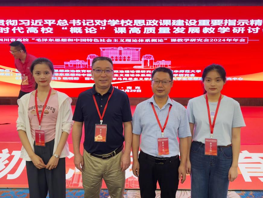 2024年6月28-30日,由四川省委教育工委、四川省教育厅指导,四川省高校思想政治理论课研究会主办的四川省高校“毛泽东思想和中国特色社会主义理论体系概论”课教学研讨会在西华师范大学举行。永利集团yl6809官网党委书记刘春辉带队赴会交流,“概论课”教研室主任王维老师,唐靖姗老师、李沵芮老师一同参会。