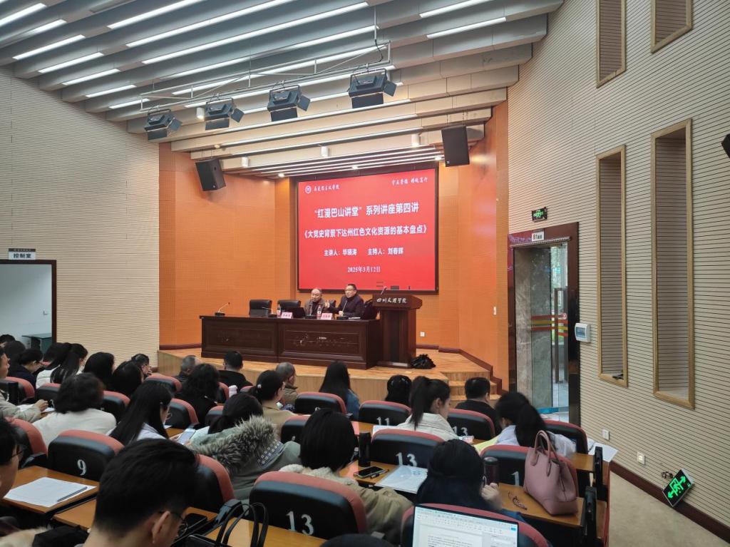 3月12日下午,应学院邀请,中共四川省达州市委党校原副校长、教授,二级巡视员毕瑛涛来我校作“红漫巴山讲堂”系列讲座第四讲——《大党史背景下达州红色文化资源的基本盘点》。讲座由学院党委书记刘春辉主持,永利集团yl6809官网师生参加讲座。