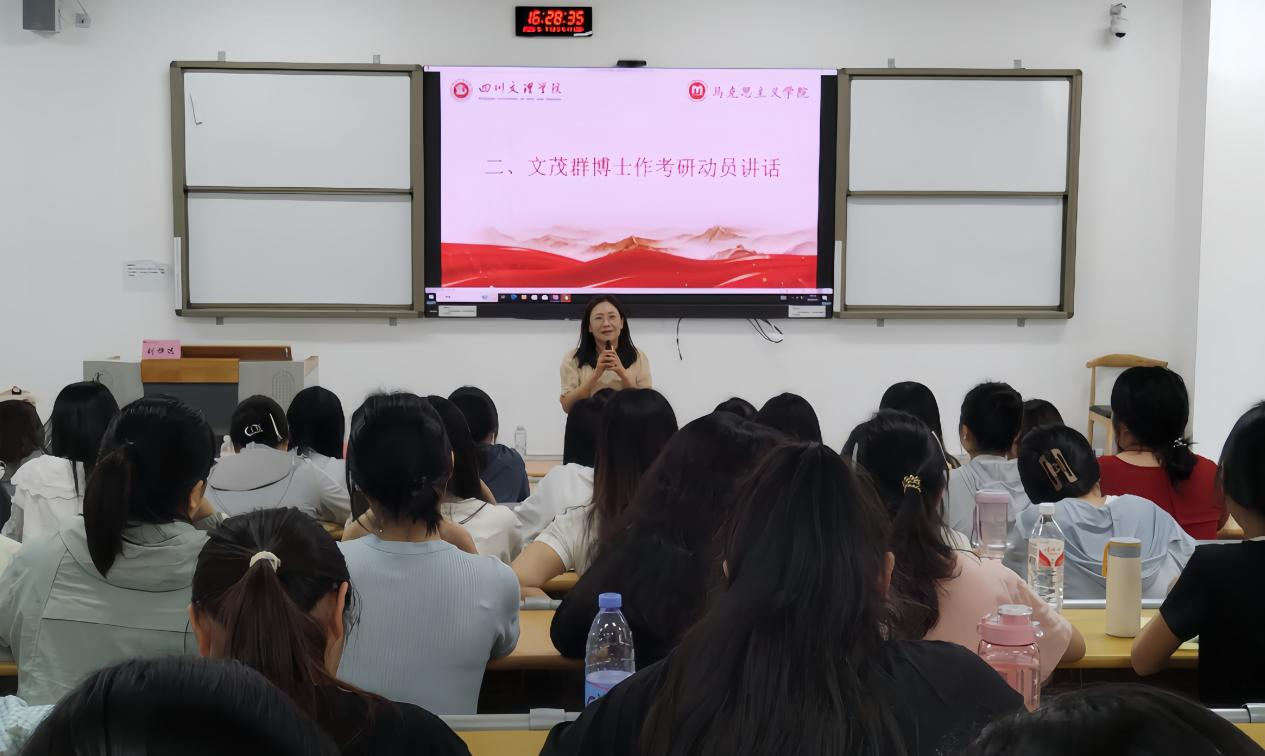 为帮助学生明确职业发展方向,做好学业与职业规划,提升考研热情,2025年5月7日下午,学院在A318教室开展职业生涯规划专题讲座暨2026届考研动员大会。学院党委书记刘春辉、党委副书记周春滟、副院长何先成、文茂群博士、达州市农业农村局乡村基层治理科科长刘恒远、辅导员唐雨涵、2022级学生出席会议,院长孙杰主持会议。
