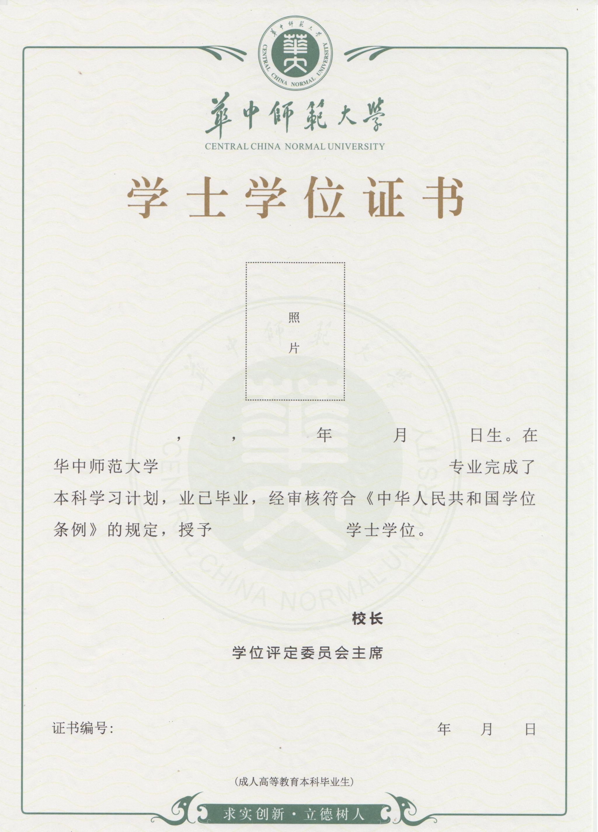 华中师范大学学生学位证