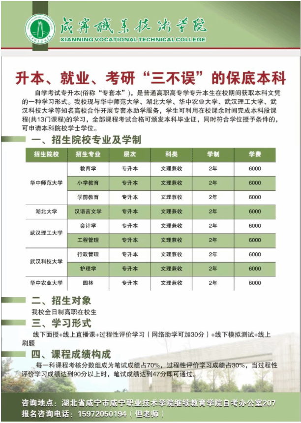 2023年咸宁职业技术学院自学考试本科助学班招生简章
